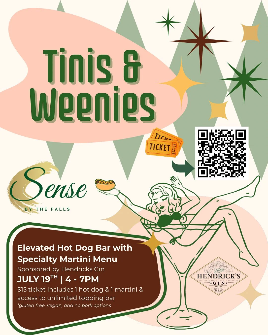 Your $15 ticket includes a hot dog of your choice with unlimited toppings from our elevated topping bar and a martini from our exclusive menu - developed with our event partner, Hendricks Gin ✨